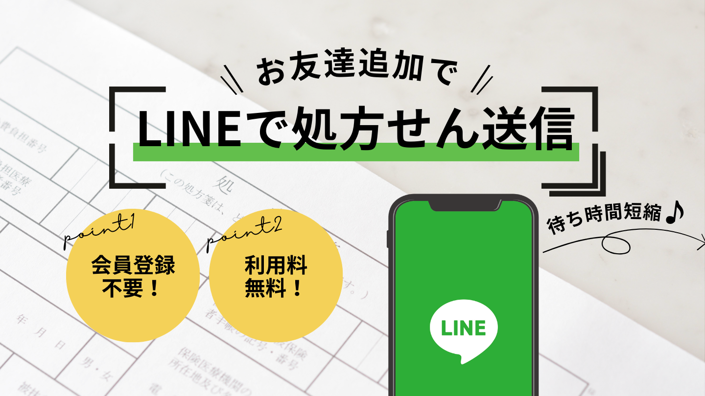 当店の処方せん送信サービスで処方内容を事前送信いただくと対応がスムーズです。