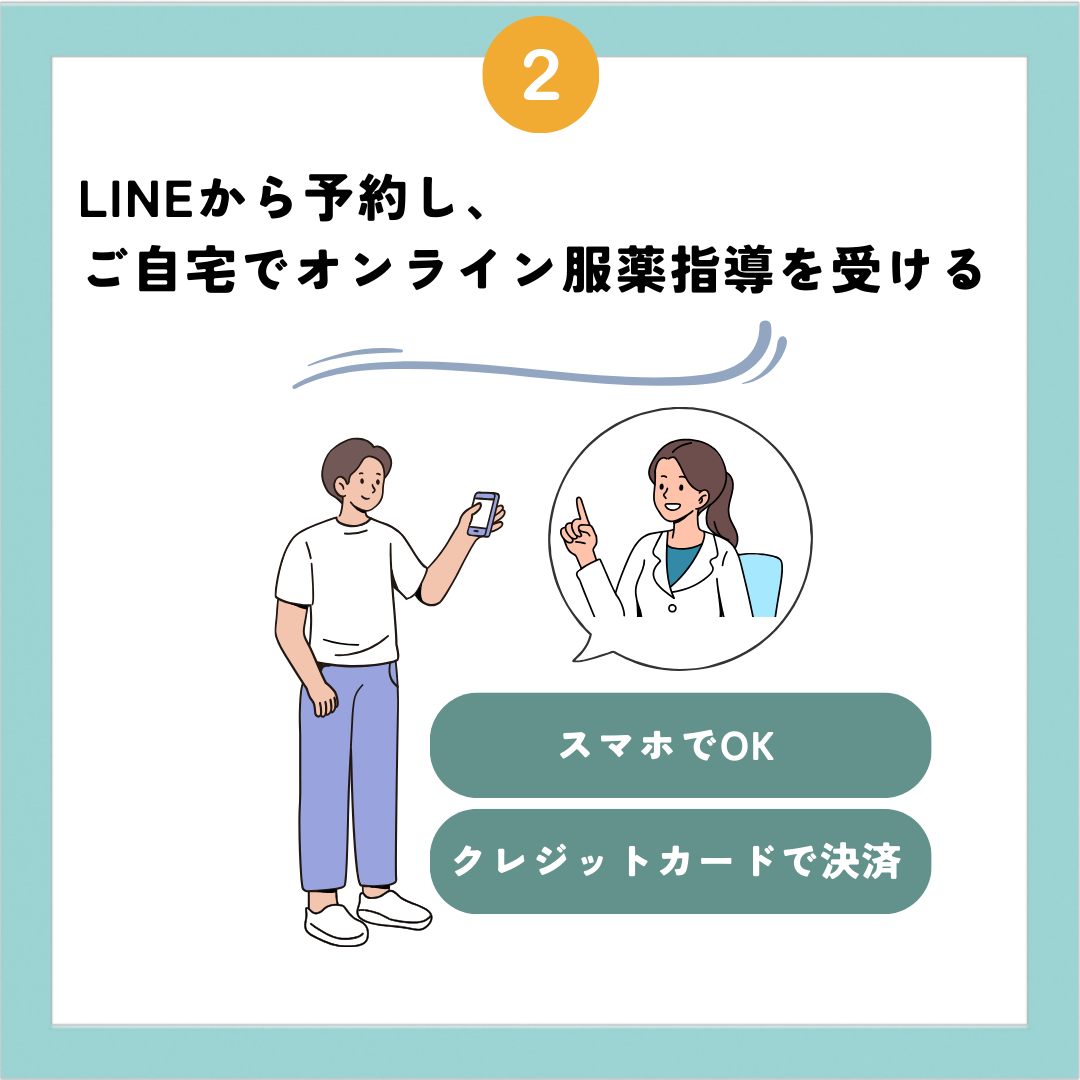 ❷LINE公式アカウントより、オンライン服薬指導の申し込みを行う。