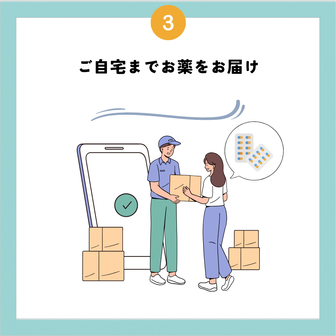 ❹オンラインによる服薬指導終了後にクレジットカードによる決済後、ご自宅にお薬をお届けします。